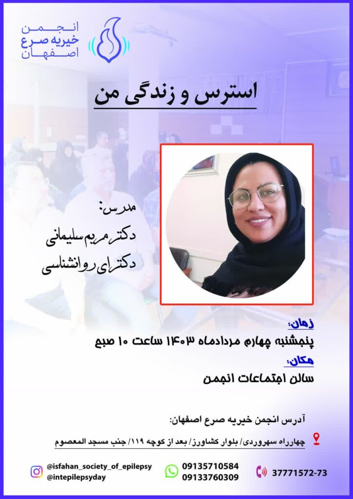 جلسه آموزشی با عنوان استرس و زندگی من توسط خانم دکتر مریم سلیمانی در تاریخ 4 مرداد 1403، ساعت 10 صبح، در سالن اجتماعات انجمن خیریه صرع اصفهان برگزار می گردد.