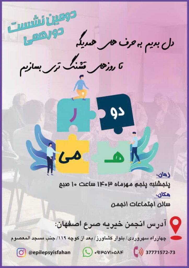 دومین نشست دورهمی 1403 در تاریخ 5 مهرماه با اعضا انجمن در سالن اجتماعات انجمن با هدف ارتقا کیفیت زندگی و کشف نیازهای این عزیزان برگزار می گردد